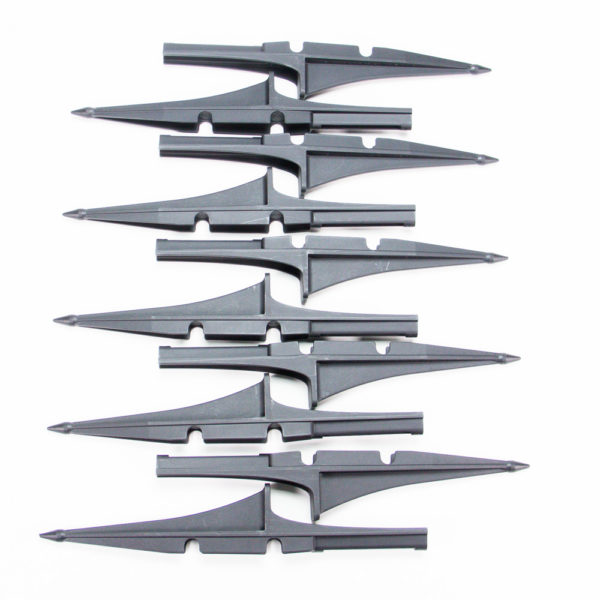 Notches in stabilizer support 1/4" union tee and allow nozzle circuit tubing to either be buried or lay on ground.